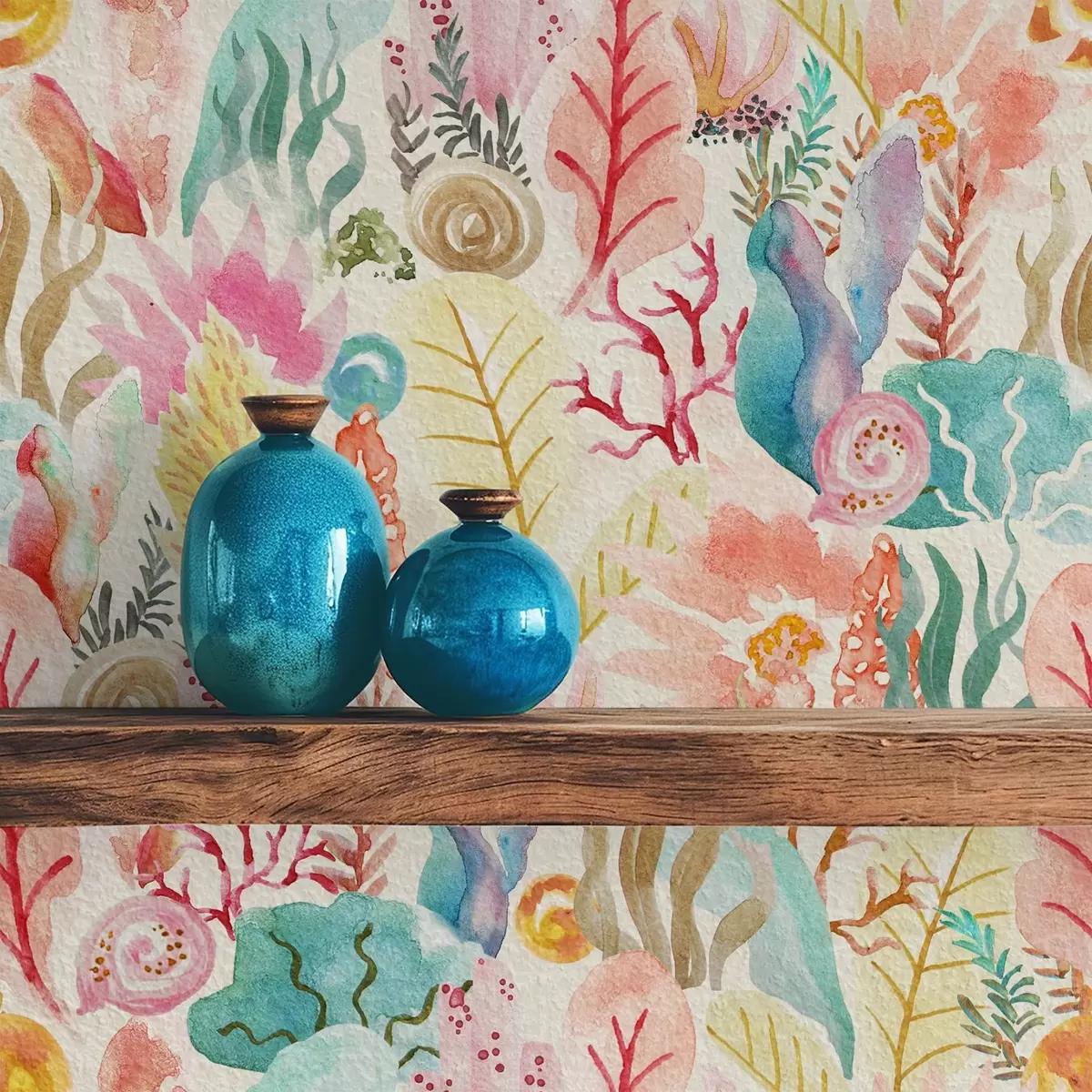 Wallpapers Watercolour underwater garden with corals and seaweed Nr. a01083