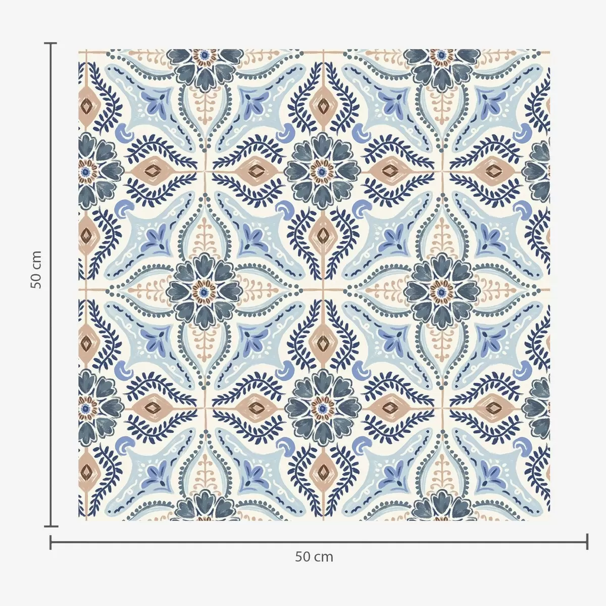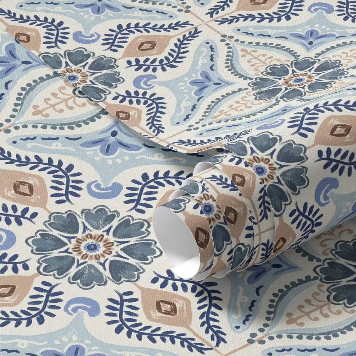 Wallpapers Blue-beige tile-style ornament painted in watercolour Nr. a01085