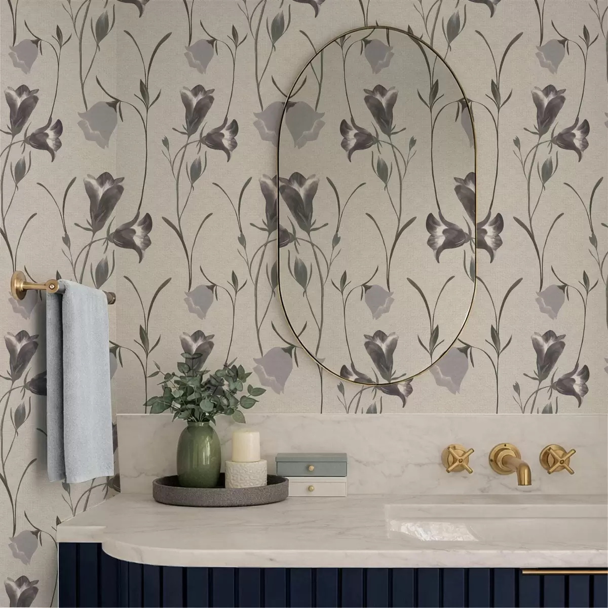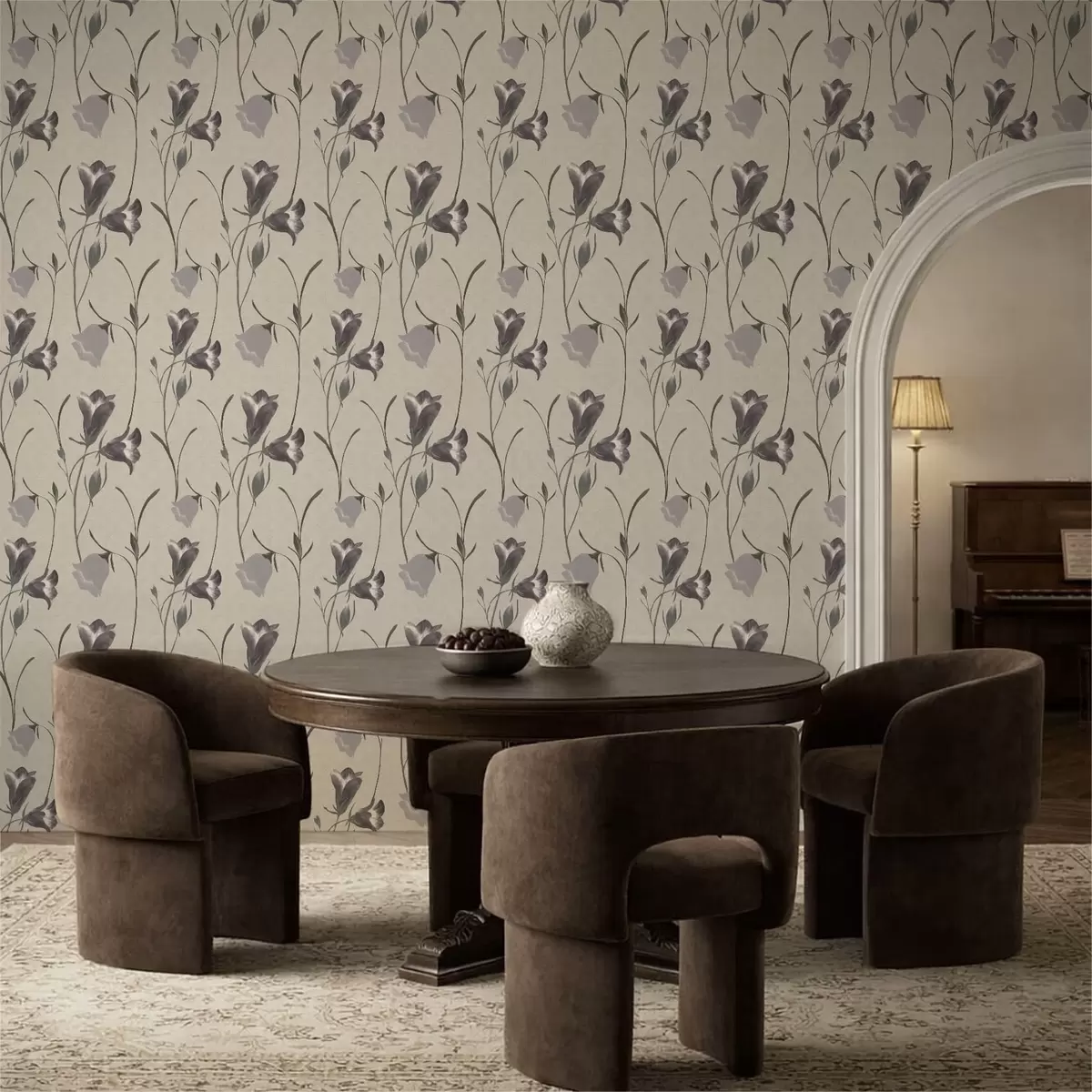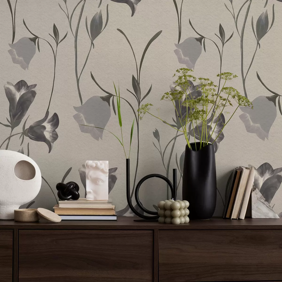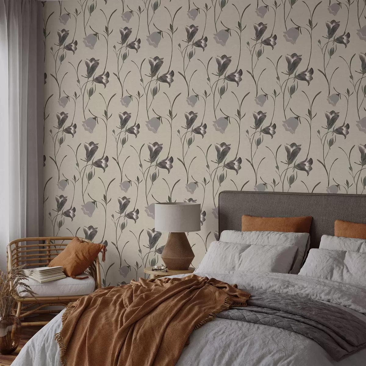 Wallpapers Gray bell flowers on light beige background Nr. a01119