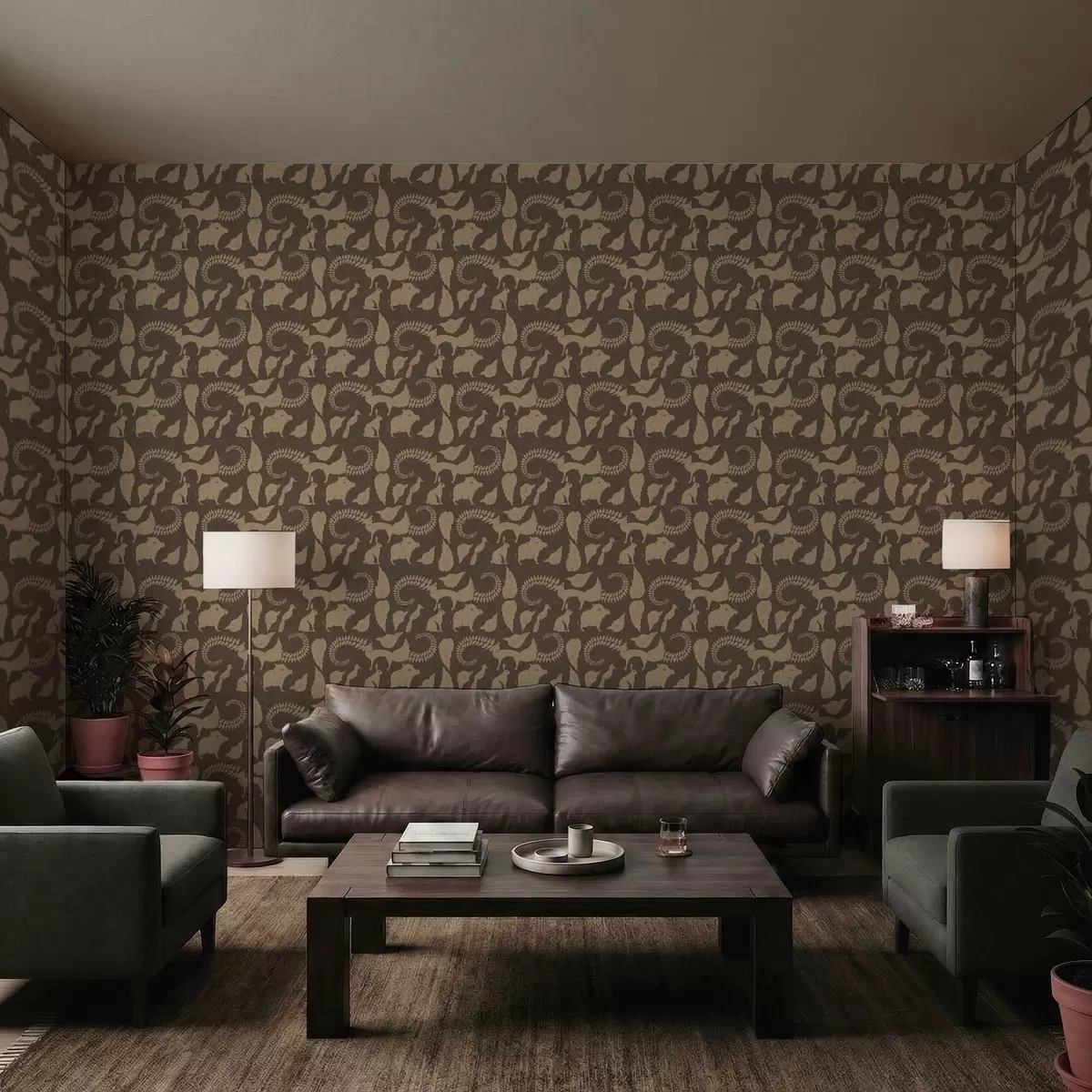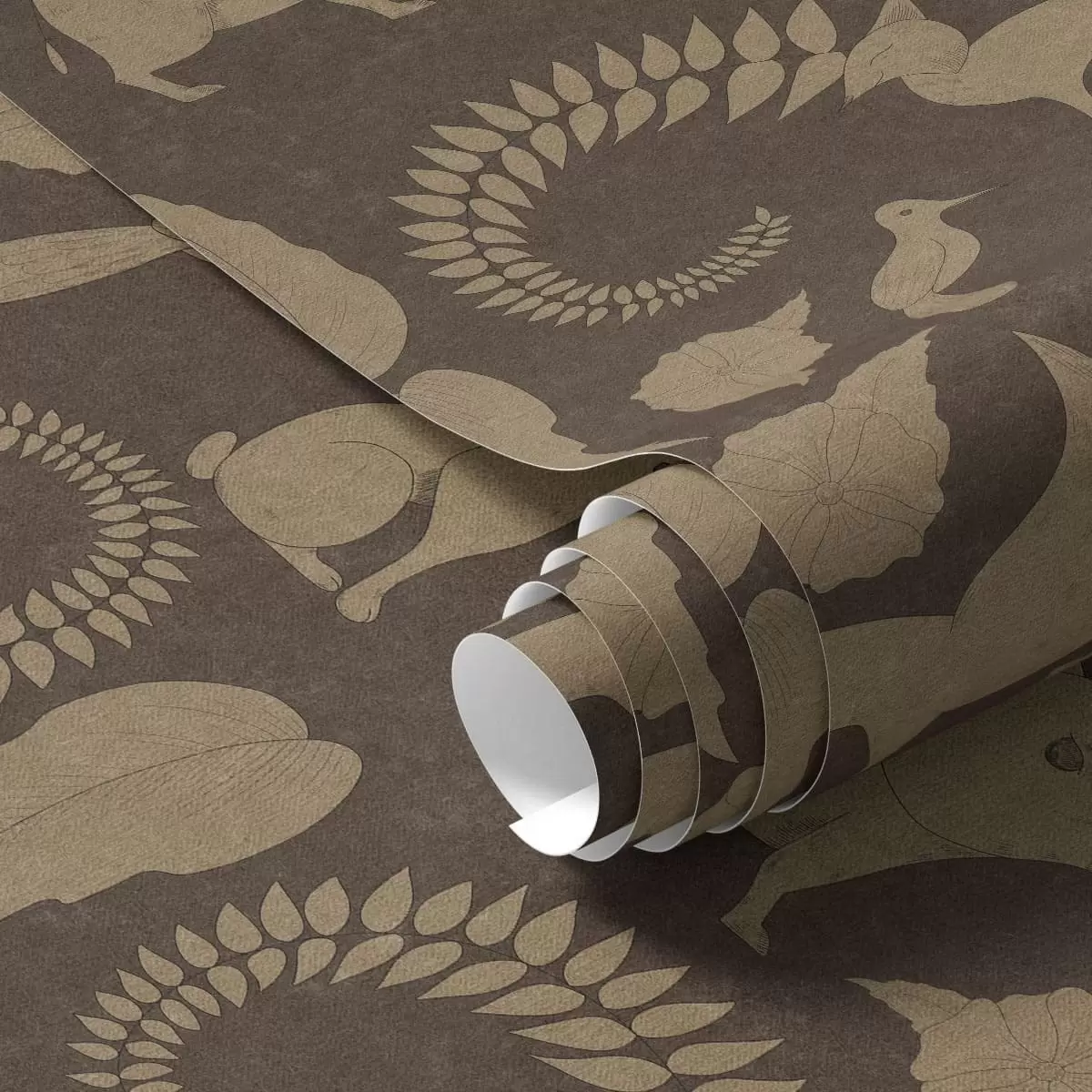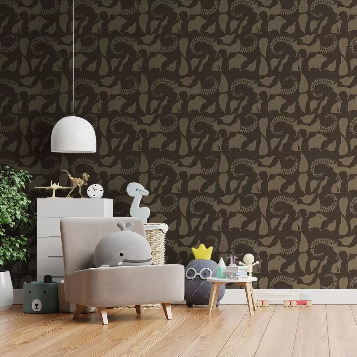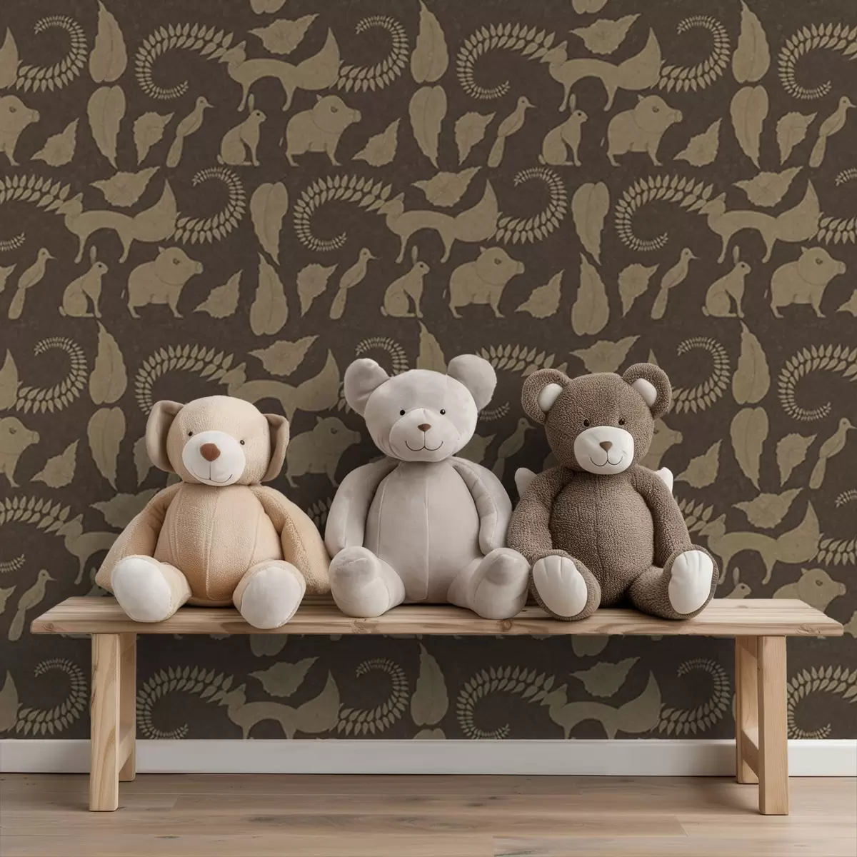 Wallpapers Forest pattern with animals on brown background Nr. a01121