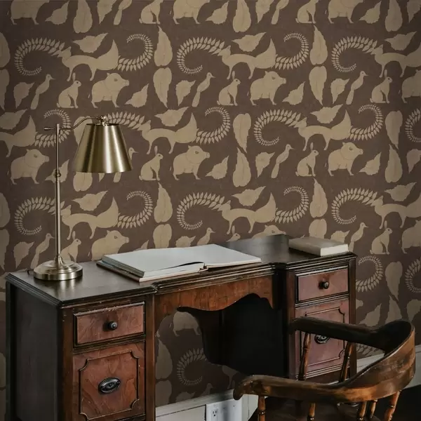 Wallpapers Forest pattern with animals on brown background Nr. a01121
