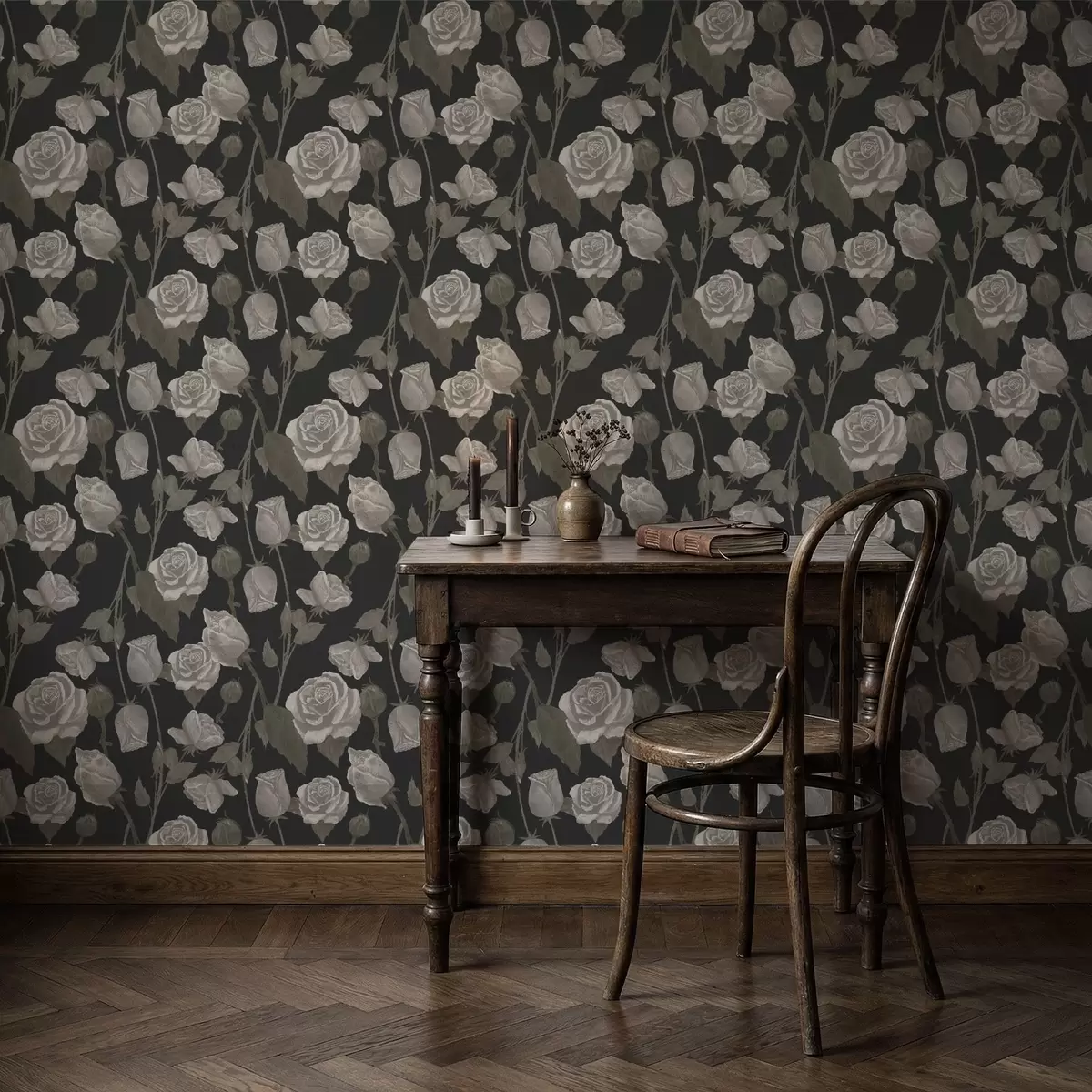 Wallpapers Floral pattern with roses on dark background Nr. a01123