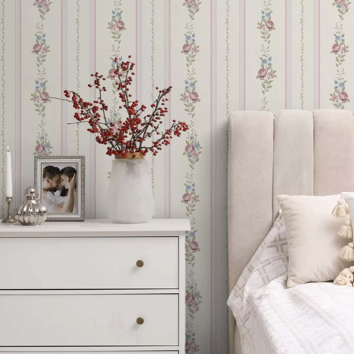 Wallpapers Striped floral pattern in soft colors Nr. a01130