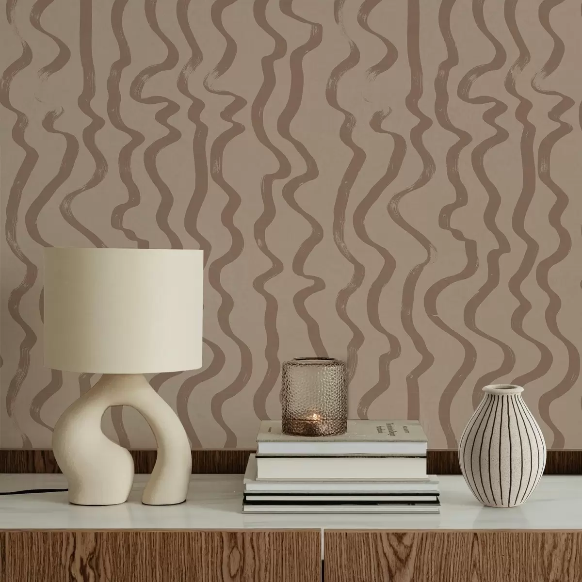 Wallpapers Beige wavy lines on light background Nr. a01168v2