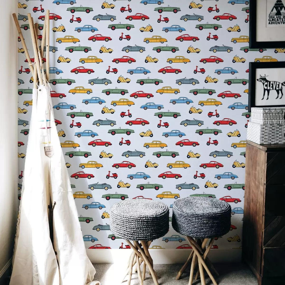 Wallpapers Retro cars and scooters on blue background Nr. a01172v2