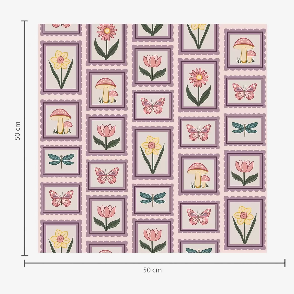 Printed to order and delivered in rolls up to 50 cm wide.