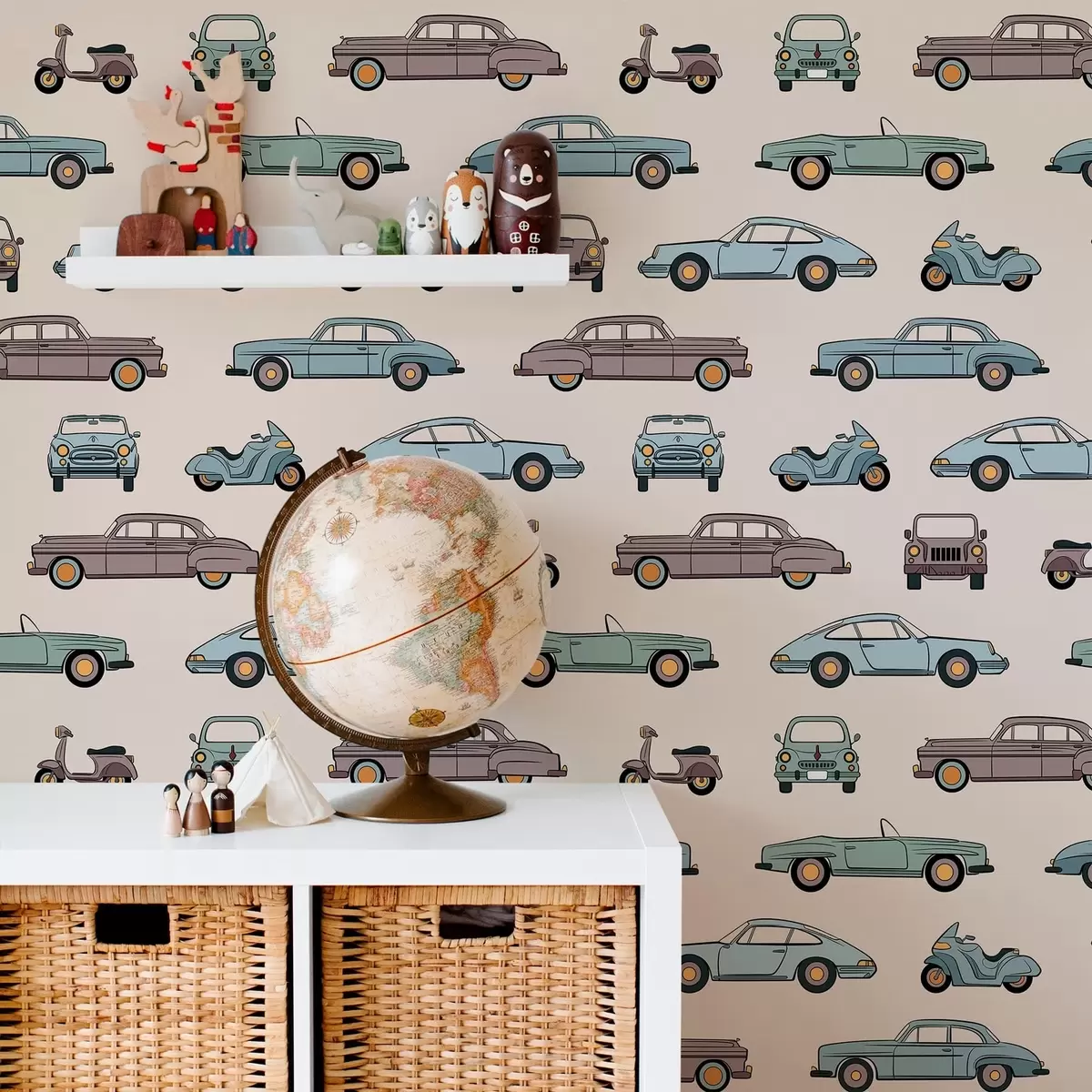 Wallpapers Retro cars and scooters on beige background Nr. a01178v1