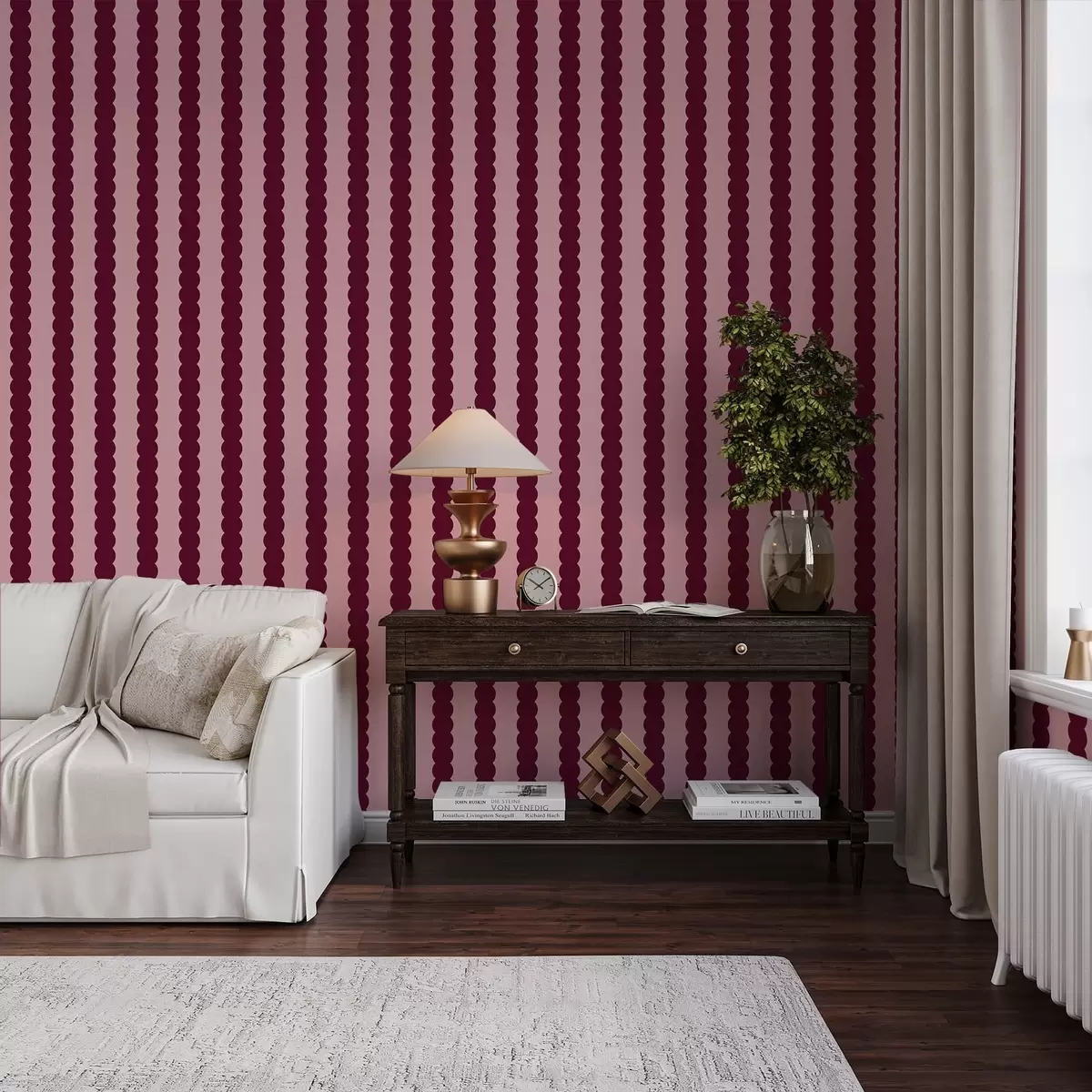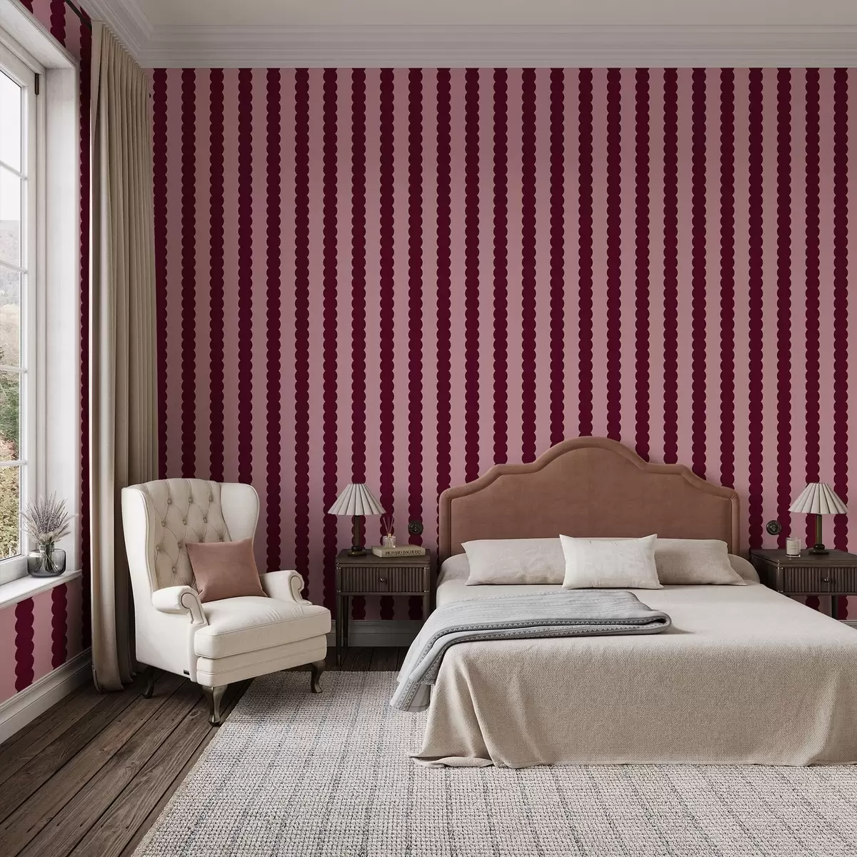Wallpapers Burgundy wavy stripes in Minimalism style Nr. a01182v5